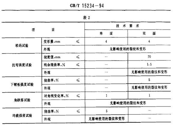 托盤應(yīng)按第6章規(guī)定依次進行各項試驗,技術(shù)要求應(yīng)符合表2規(guī)定。